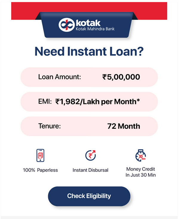 You are pre approved for instant personal loans up to 5 Lakhs. check your eligibility.