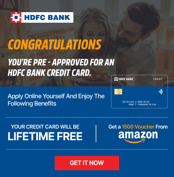 You are pre approved for hdfc lifetimefree creditcards. get it now and enjoy the Rs 1500 voucher.